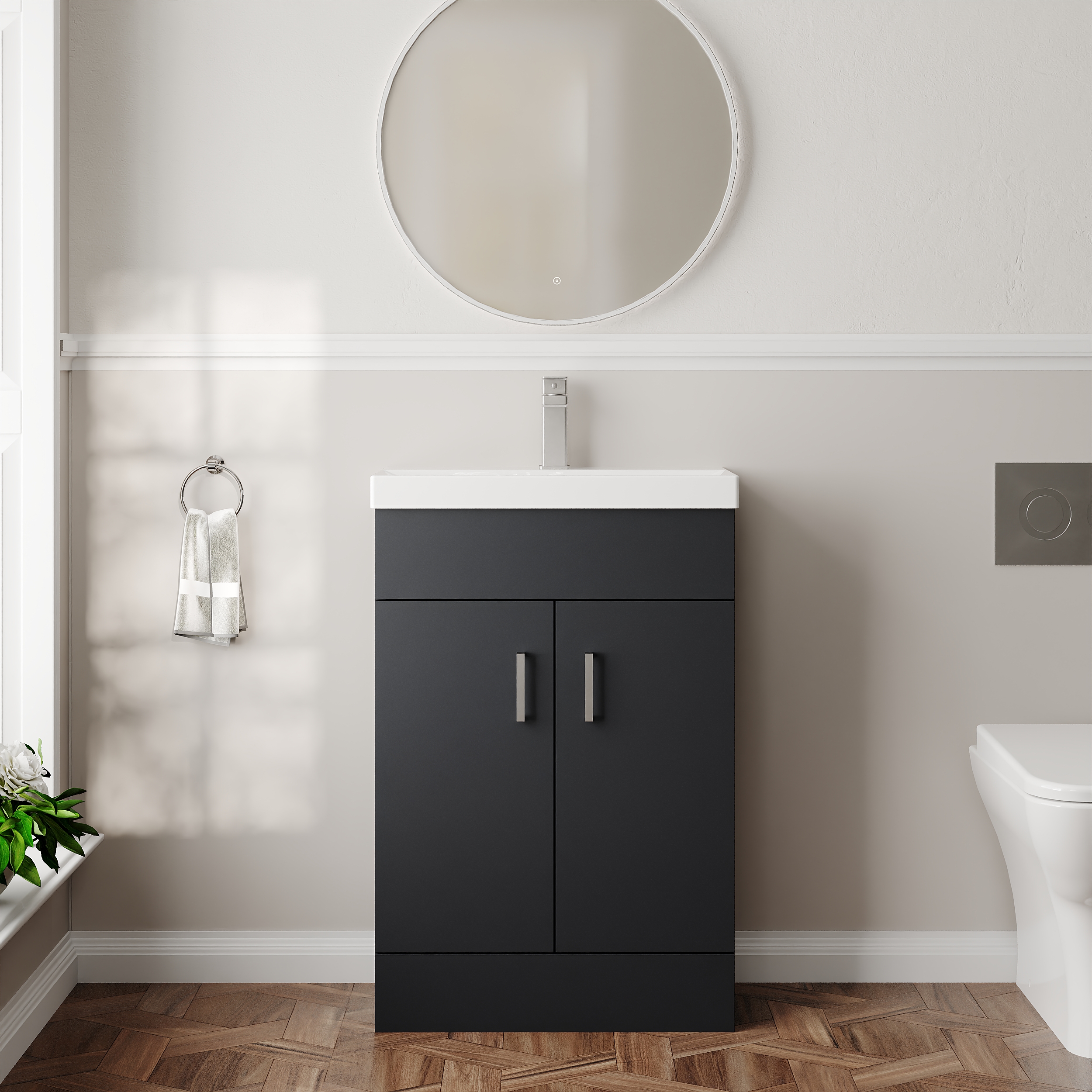 Nuie Choice Turin 550mm Soft Black Floor Standing 2 Door Vanity Unit With Thin-edge Basin