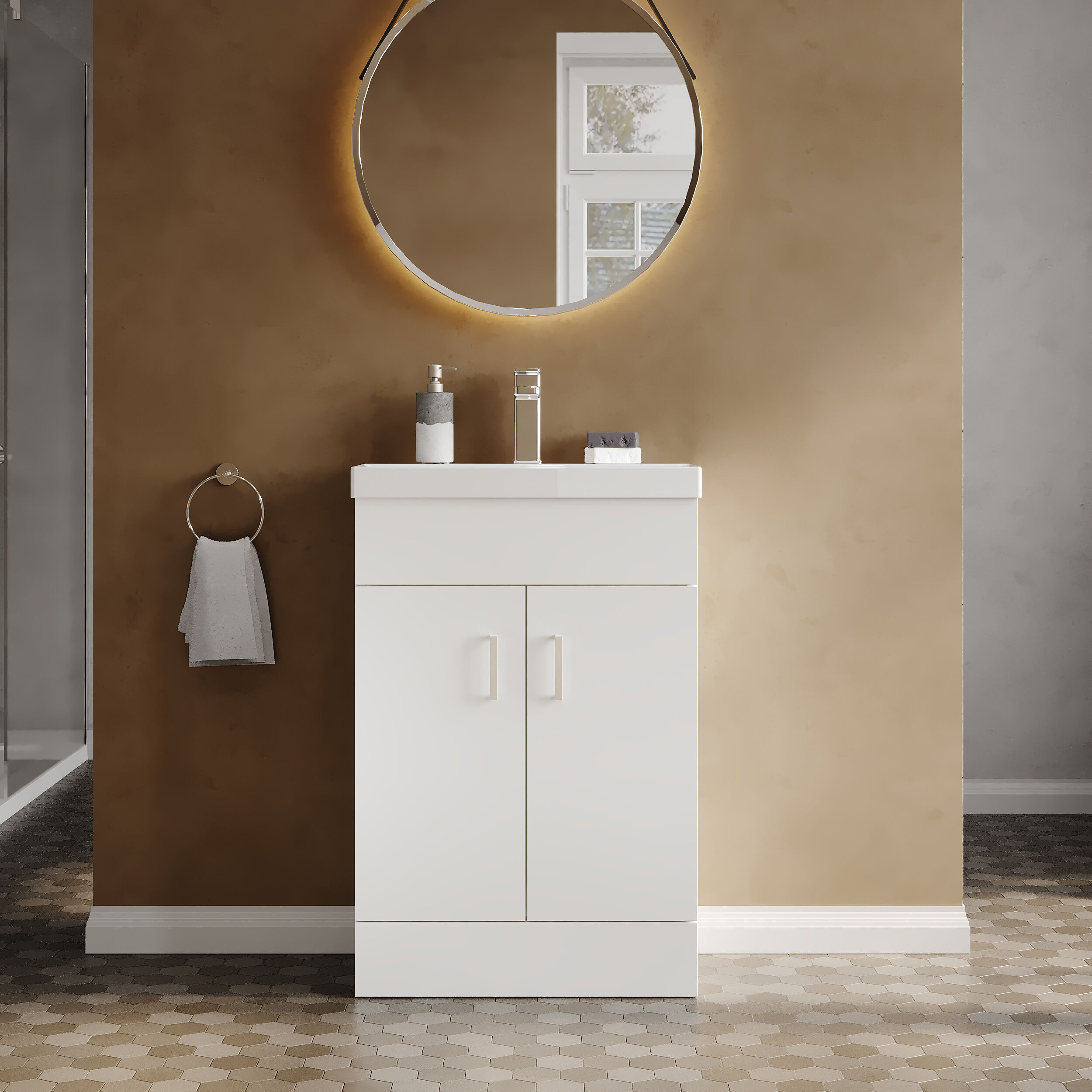 Nuie Choice Turin 560mm Floor Standing Gloss White 2 Door Vanity Unit with Basin
