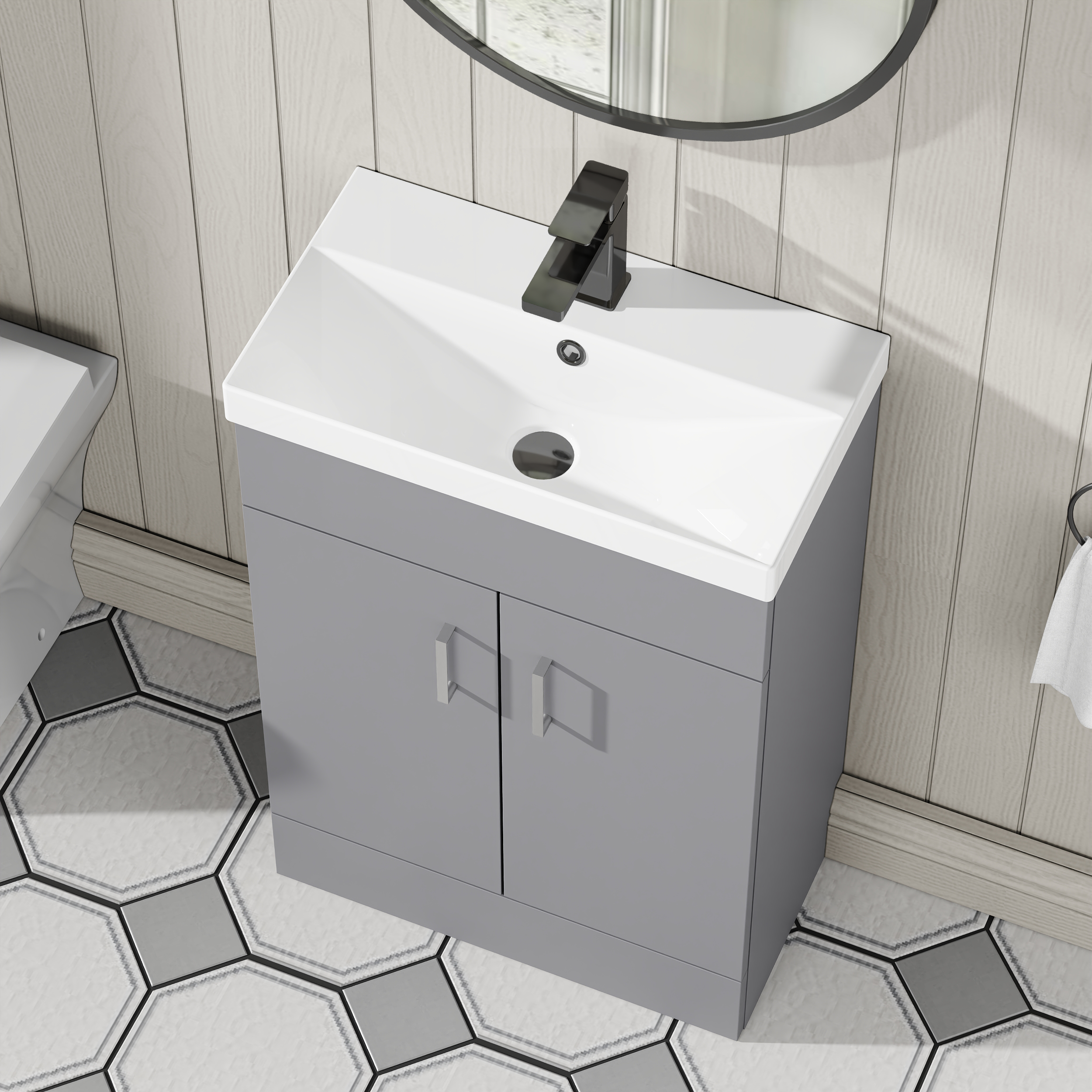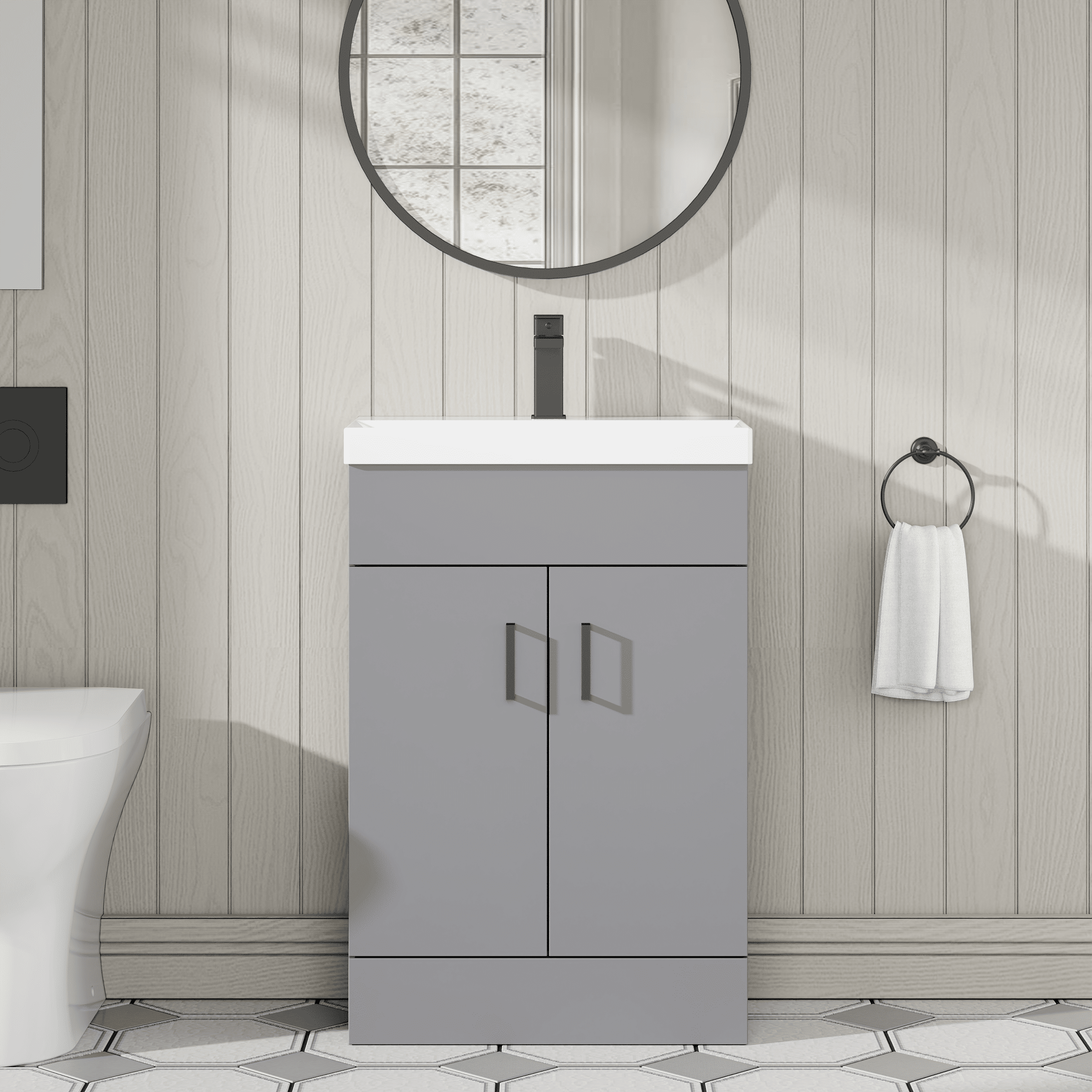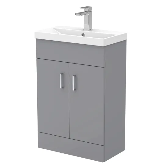 nuie choice 550mm Floor Standing 2 Door Unit with Thin-edge Basin - Satin Grey