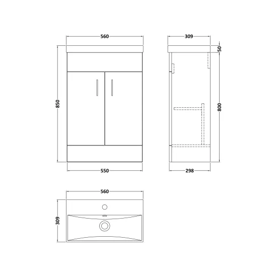 Nuie Choice Turin 550mm Satin Grey Floor Standing 2 Door Unit With Basin