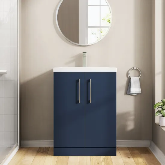 nuie 600mm Floor Standing 2-Door Vanity & Ceramic Basin - Midnight Blue
