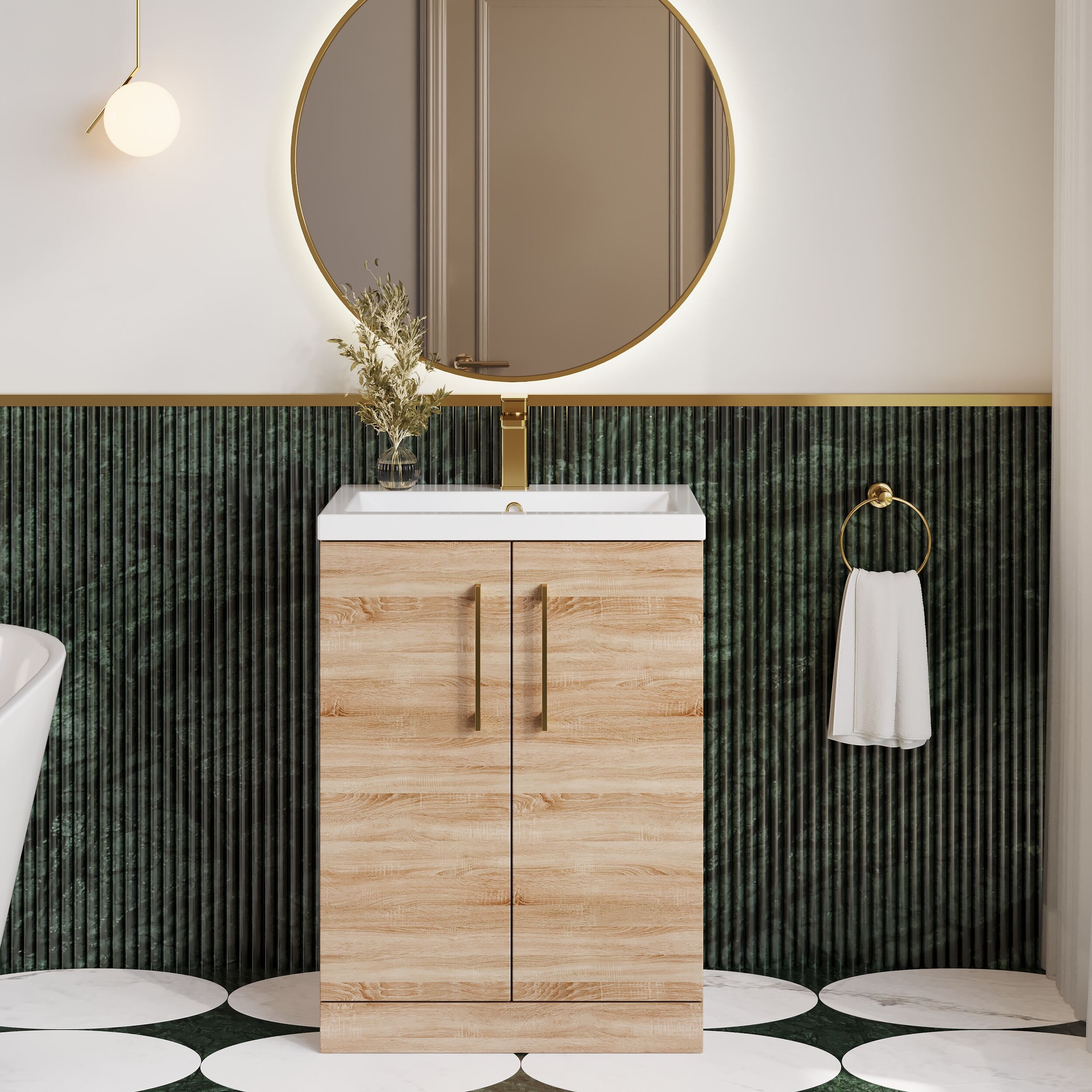 nuie 600mm Floor Standing 2-Door Vanity & Polymarble Basin - Bleached Oak
