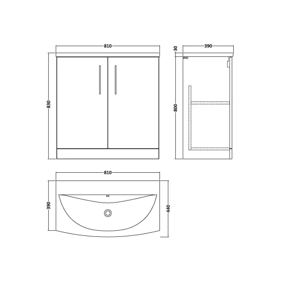 Nuie 800mm Floor Standing 2-Door Vanity & Basin