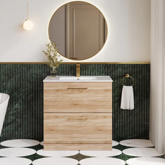 nuie 800mm Floor Standing 2-Drawer Vanity & Basin 2 - Bleached Oak