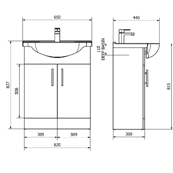 Arley KASS 650mm White 2 Door Vanity Unit With Basin