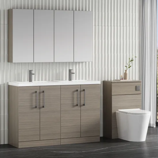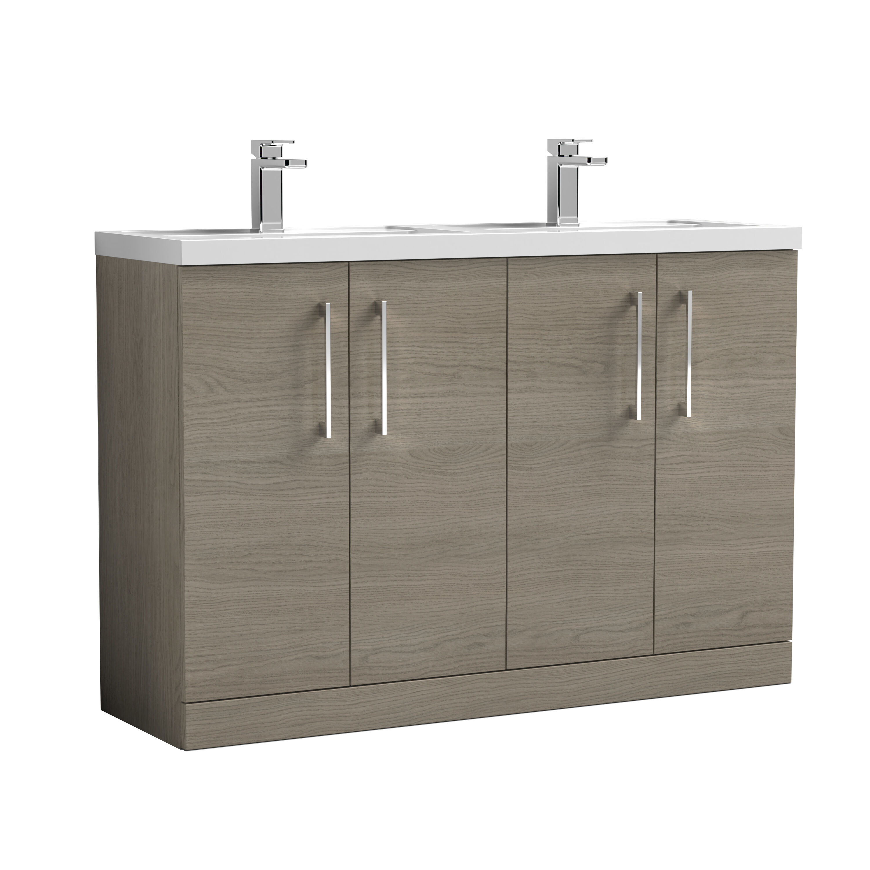 nuie Arno 1200mm Floor Standing 4 Door Vanity & Double Basin 1 - Grey Vicenza Oak