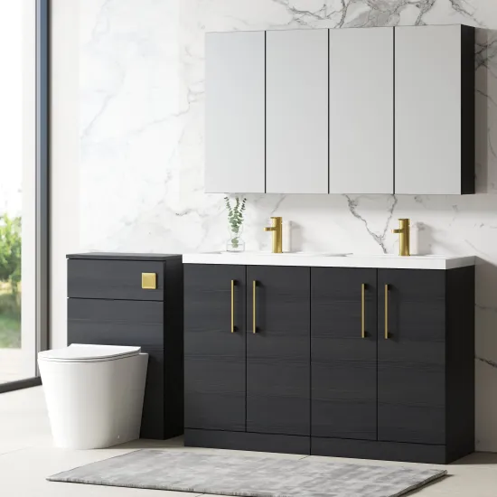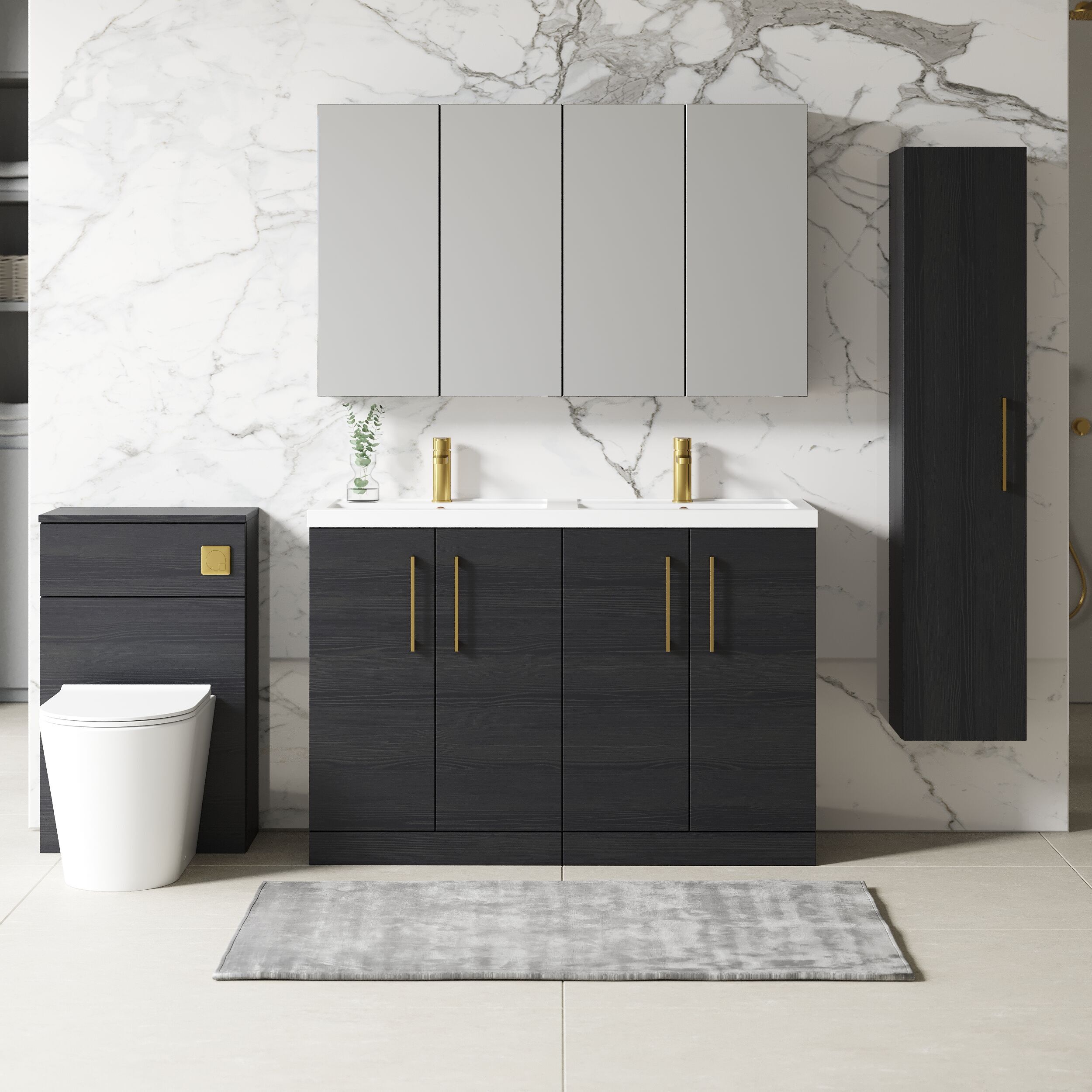 nuie Arno 1200mm Floor Standing 4 Door Vanity & Double Basin 1 - Black Woodgrain