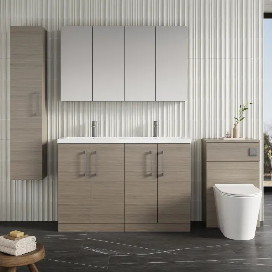 nuie Arno 1200mm Floor Standing 4 Door Vanity & Double Basin 2 - Grey Vicenza Oak
