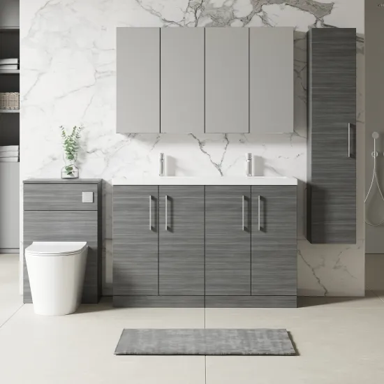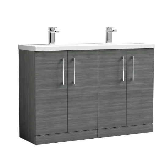 Nuie Arno 1200mm Floor Standing 4 Door Vanity & Double Basin 2 - Anthracite Woodgrain