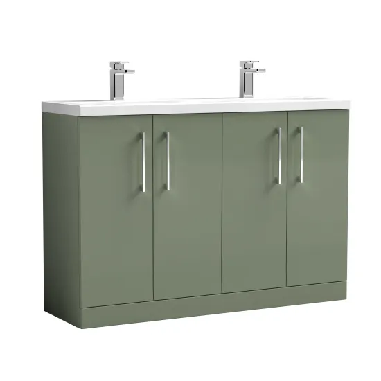 nuie Arno 1200mm Floor Standing 4 Door Vanity & Double Basin 2 - Satin Green