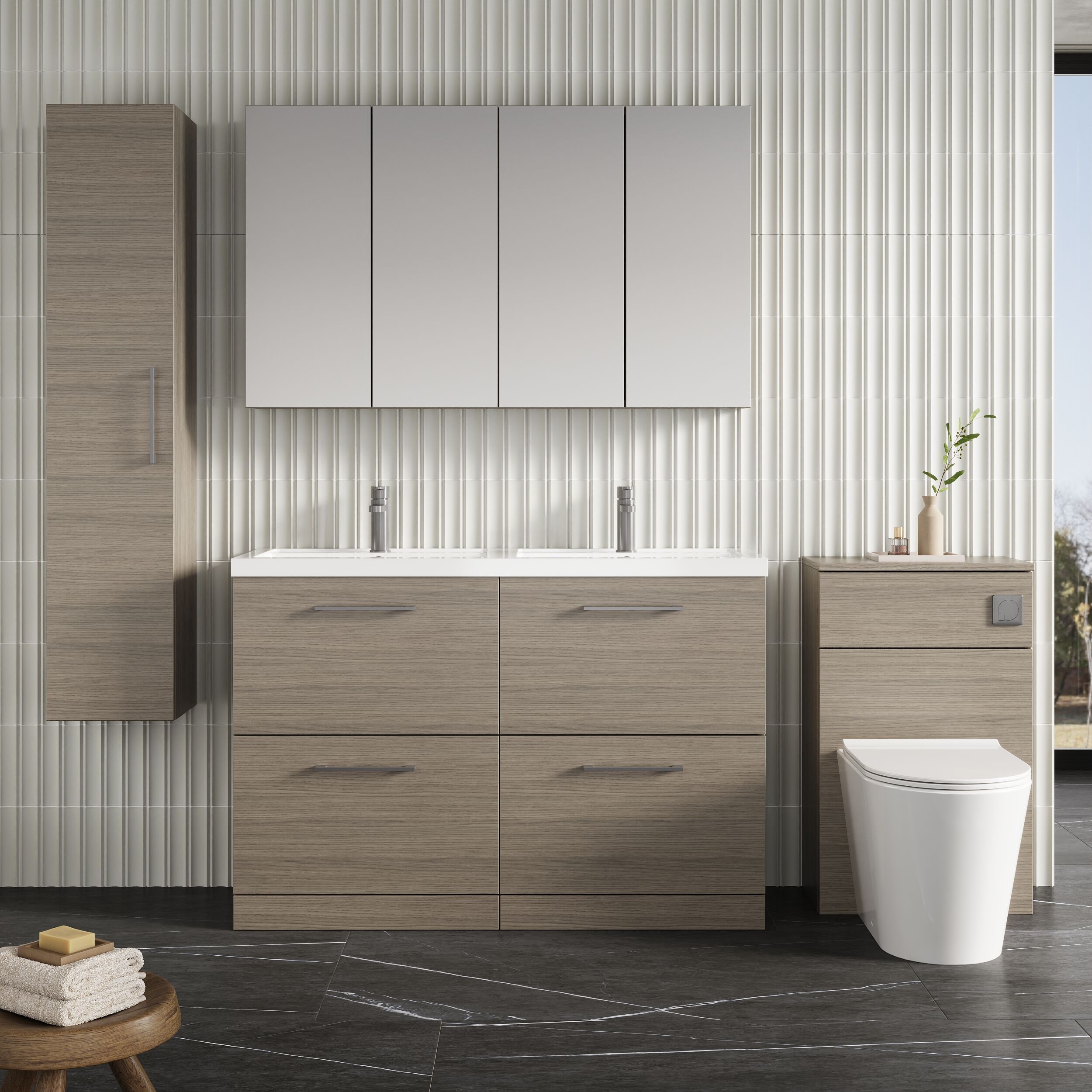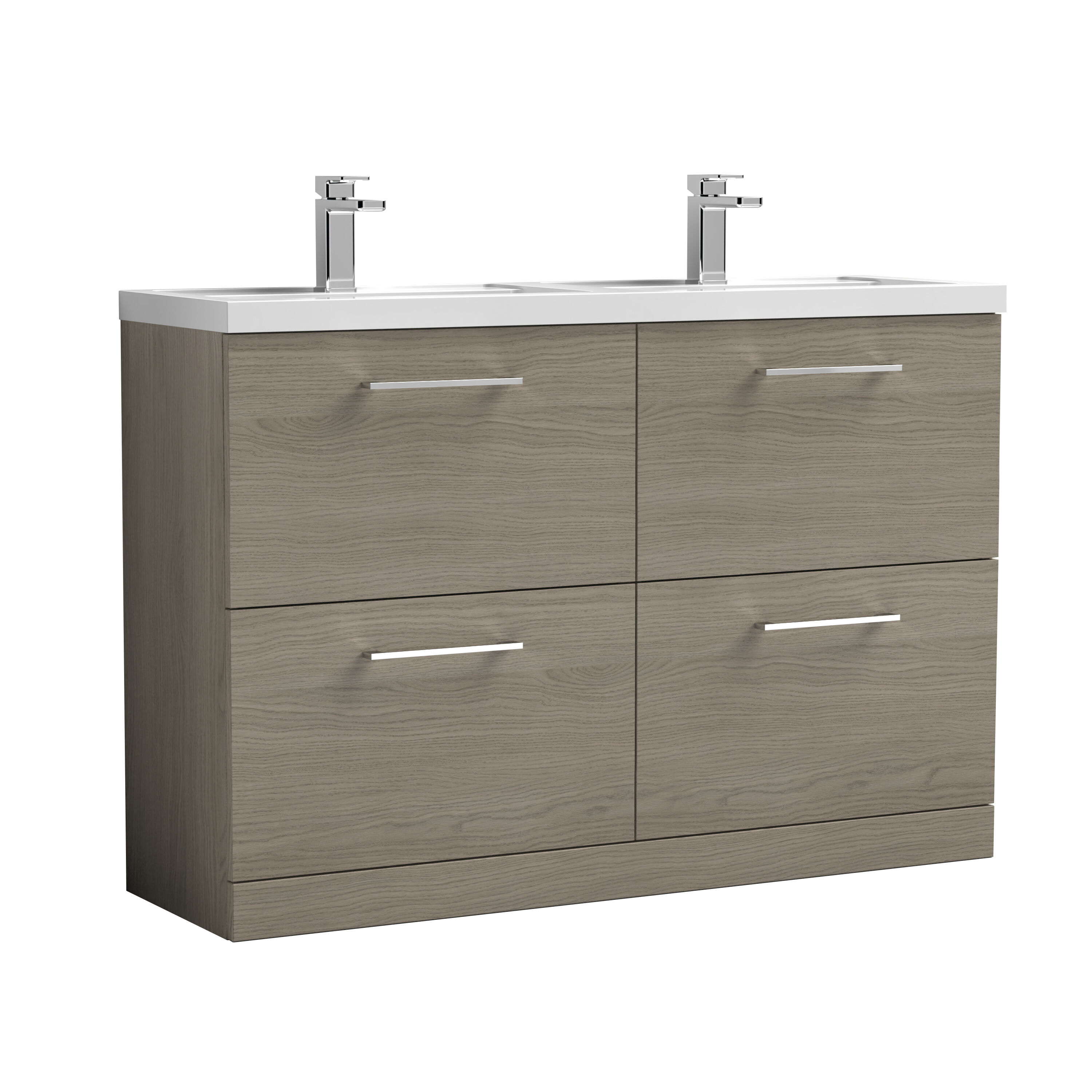nuie Arno 1200mm Floor Standing 4 Drawer Vanity & Double Basin 1 - Grey Vicenza Oak
