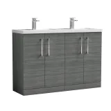 Nuie Arno 1200mm Anthracite Woodgrain Floor Standing 4 Door Double Basin Vanity Unit