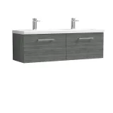 Nuie 1200mm Anthracite Wall Hung 2-Drawer Vanity Unit with Double Basin