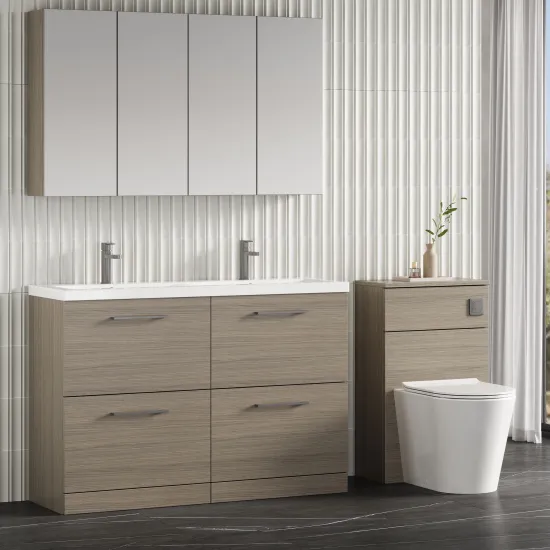 Nuie Arno 1200mm Solace Oak Floor Standing 4 Drawer Vanity Unit & Double Basin