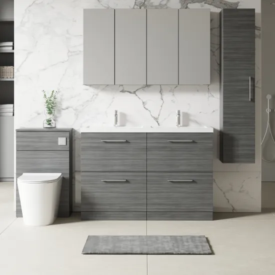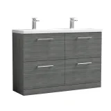 Nuie Arno 1200mm Floor Standing 4 Drawer Vanity & Double Basin 1 - Anthracite Woodgrain
