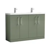 Nuie Arno 1200mm Satin Green Floor Standing 4 Door Vanity Unit & Double Basin