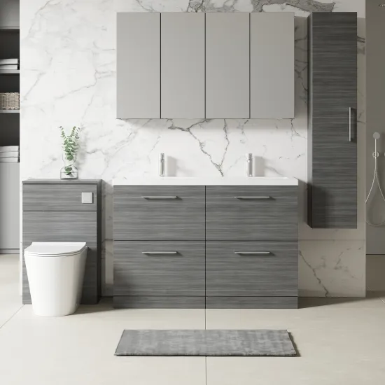 Nuie Arno 1200mm Floor Standing 4 Drawer Vanity & Double Basin 2 - Anthracite Woodgrain
