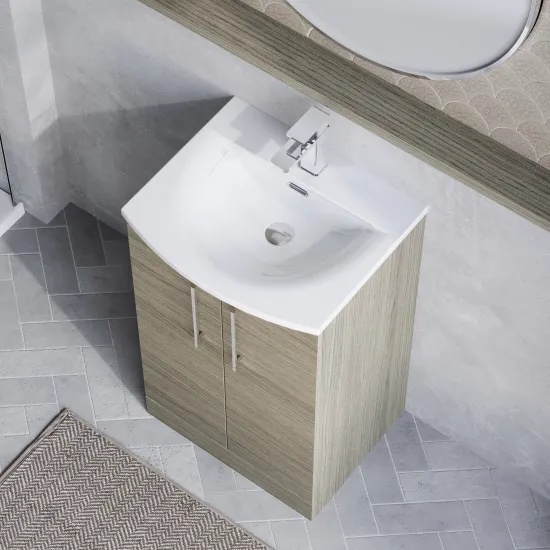 nuie Arno 500mm Floor Standing 2-Door Vanity & Curved Basin - Solace Oak