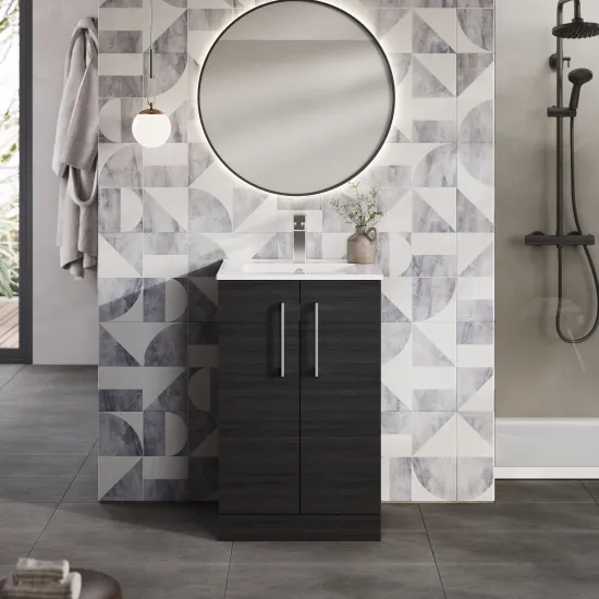 Nuie Arno 500mm Charcoal Black Floor Standing 2-Door Vanity Unit With Thin-Edge Basin