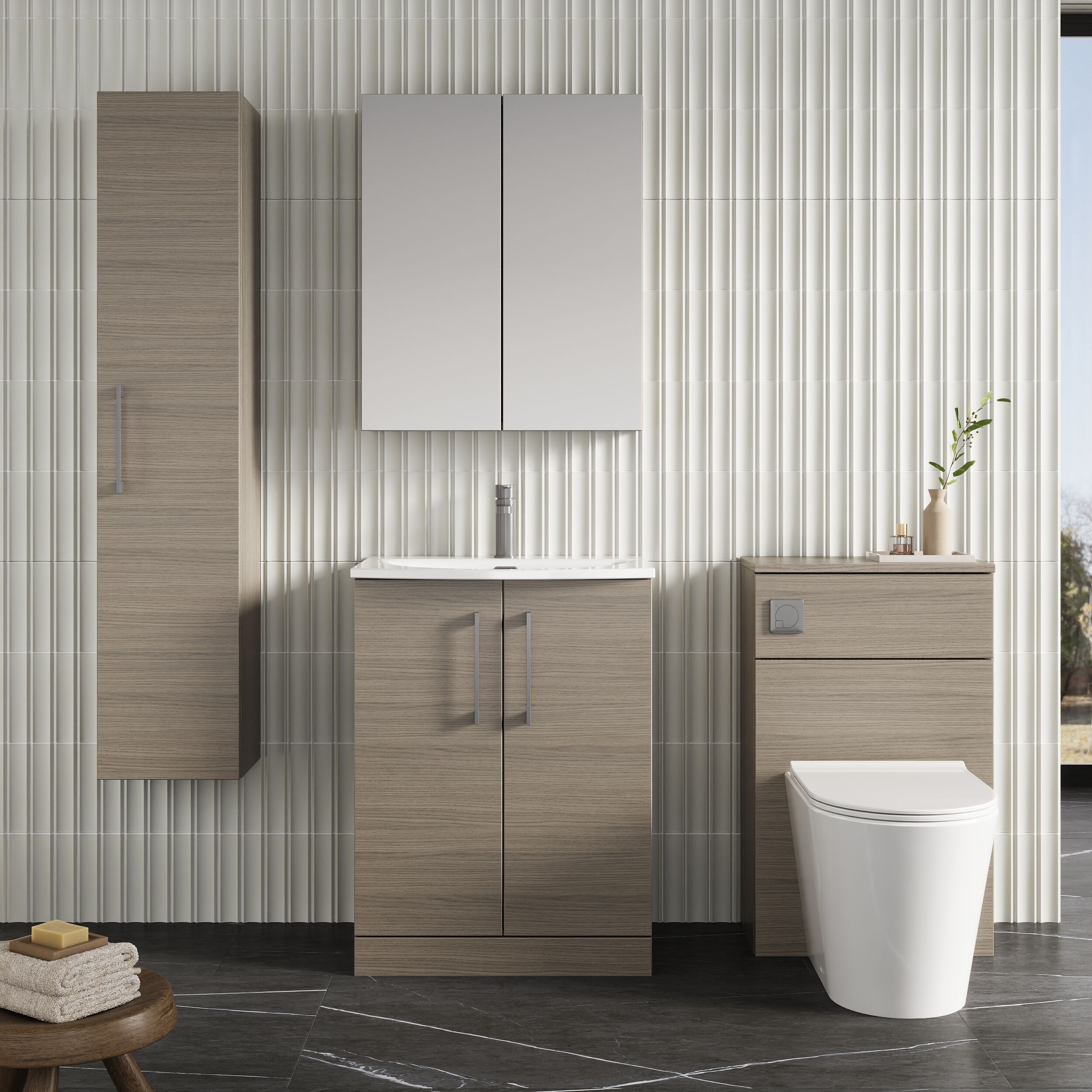 Nuie Arno 600mm 2 Door Solace Oak Wall Hung 50/50 Mirror Cabinet