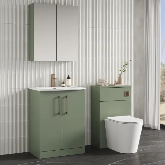 Nuie Arno 600mm Satin Green Floor Standing 2-Door Vanity Unit with Thin-Edge Basin