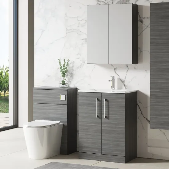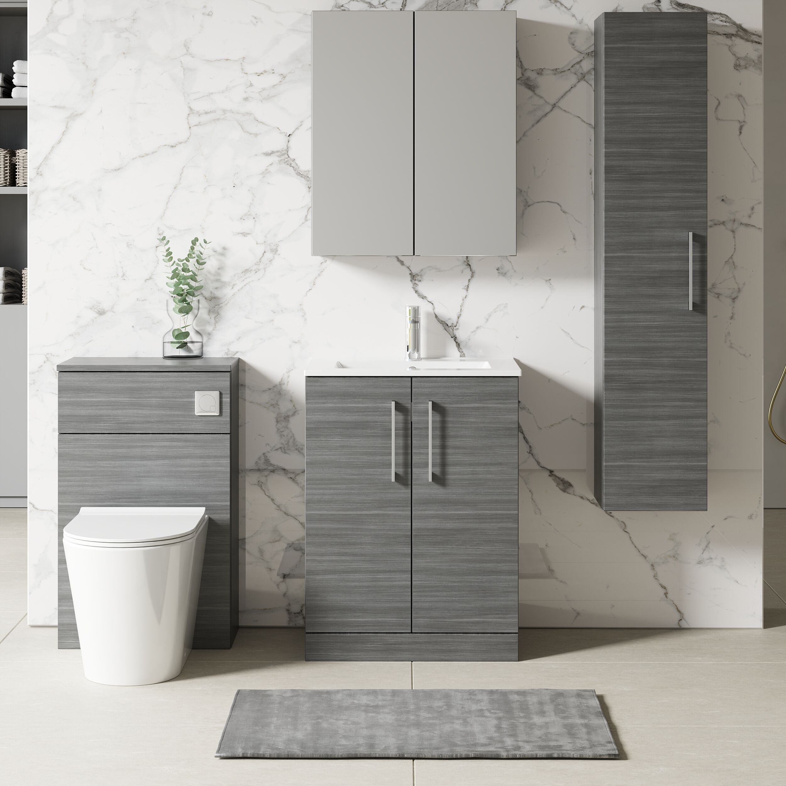 Nuie Arno 600mm 2 Door Graphite Grey Woodgrain Wall Hung 50/50 Mirror Cabinet