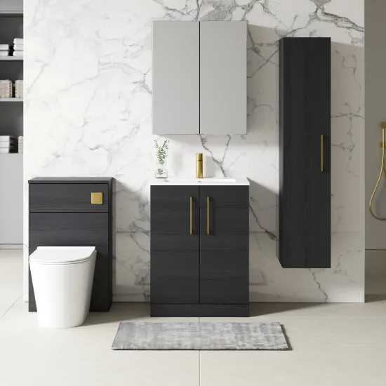 Nuie Arno 600mm Charcoal Black Floor Standing 2-Door Vanity & Mid-Edge Basin