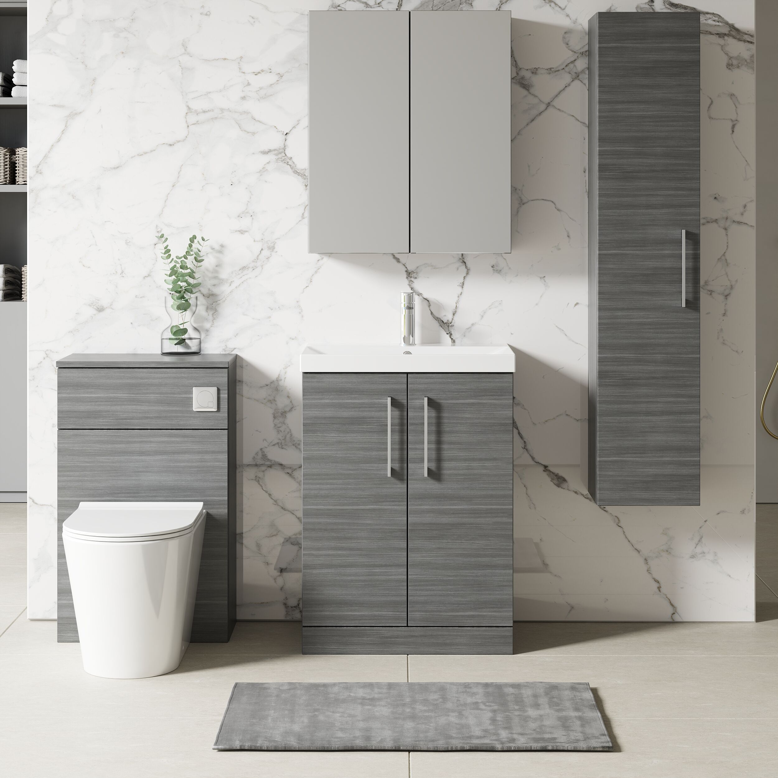 Nuie Arno 600mm Anthracite Woodgrain Floor Standing 2-Door Vanity Unit with Basin