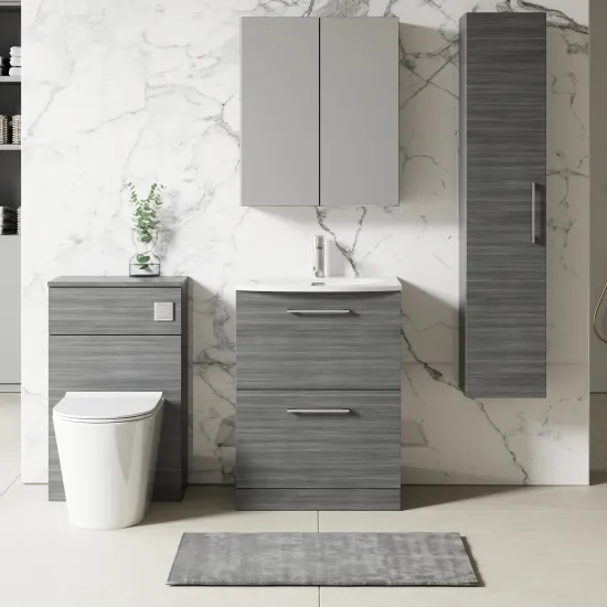 Nuie Arno 600mm Anthracite Woodgrain Floor Standing 2-Drawer Vanity Unit with Thin-Edge Basin