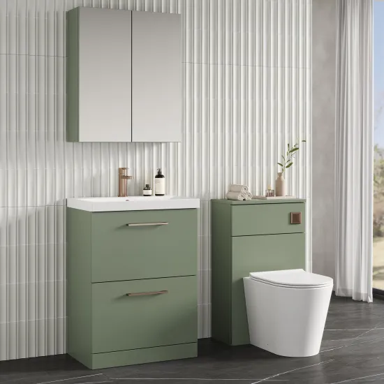 nuie Arno 600mm Floor Standing 2-Drawer Vanity & Thin-Edge Basin - Satin Green