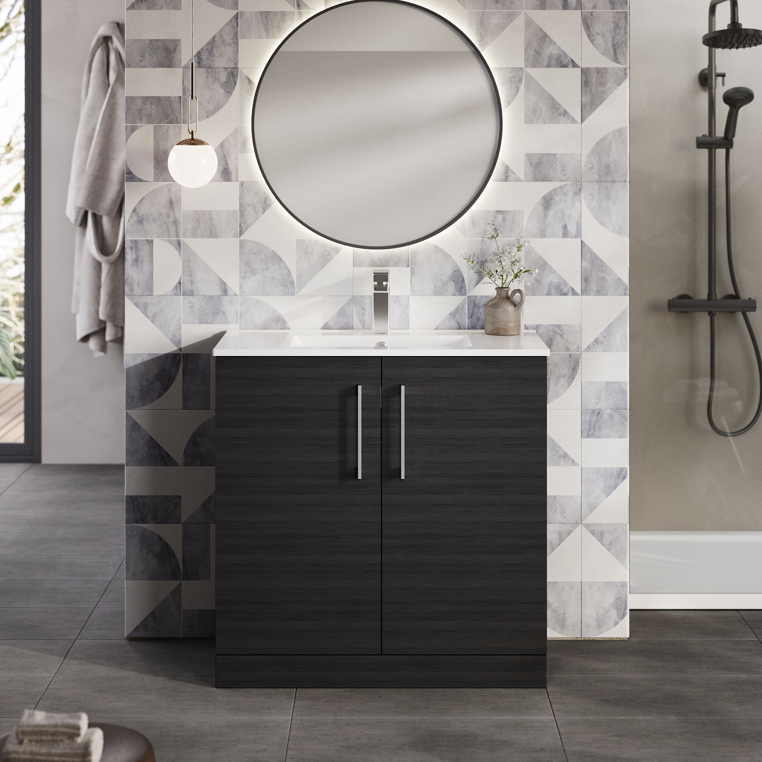 nuie Arno 800mm Floor Standing 2-Door Vanity & Minimalist Basin - Charcoal Black