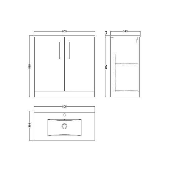 nuie Arno 800mm Floor Standing 2-Door Vanity & Minimalist Basin - Satin Green