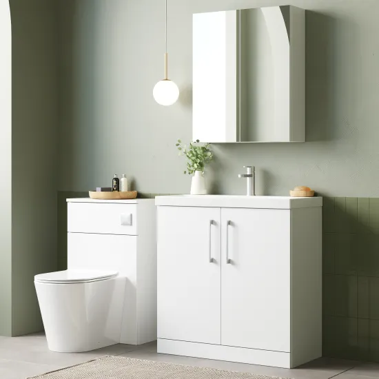 nuie Arno 800mm Floor Standing 2-Door Vanity & Thin-Edge Basin - Gloss White