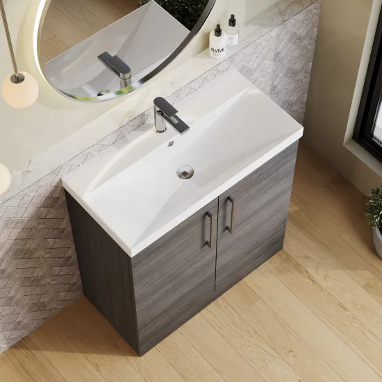 Nuie Arno 800mm Anthracite Woodgrain Floor Standing 2-Door Vanity Unit with Basin