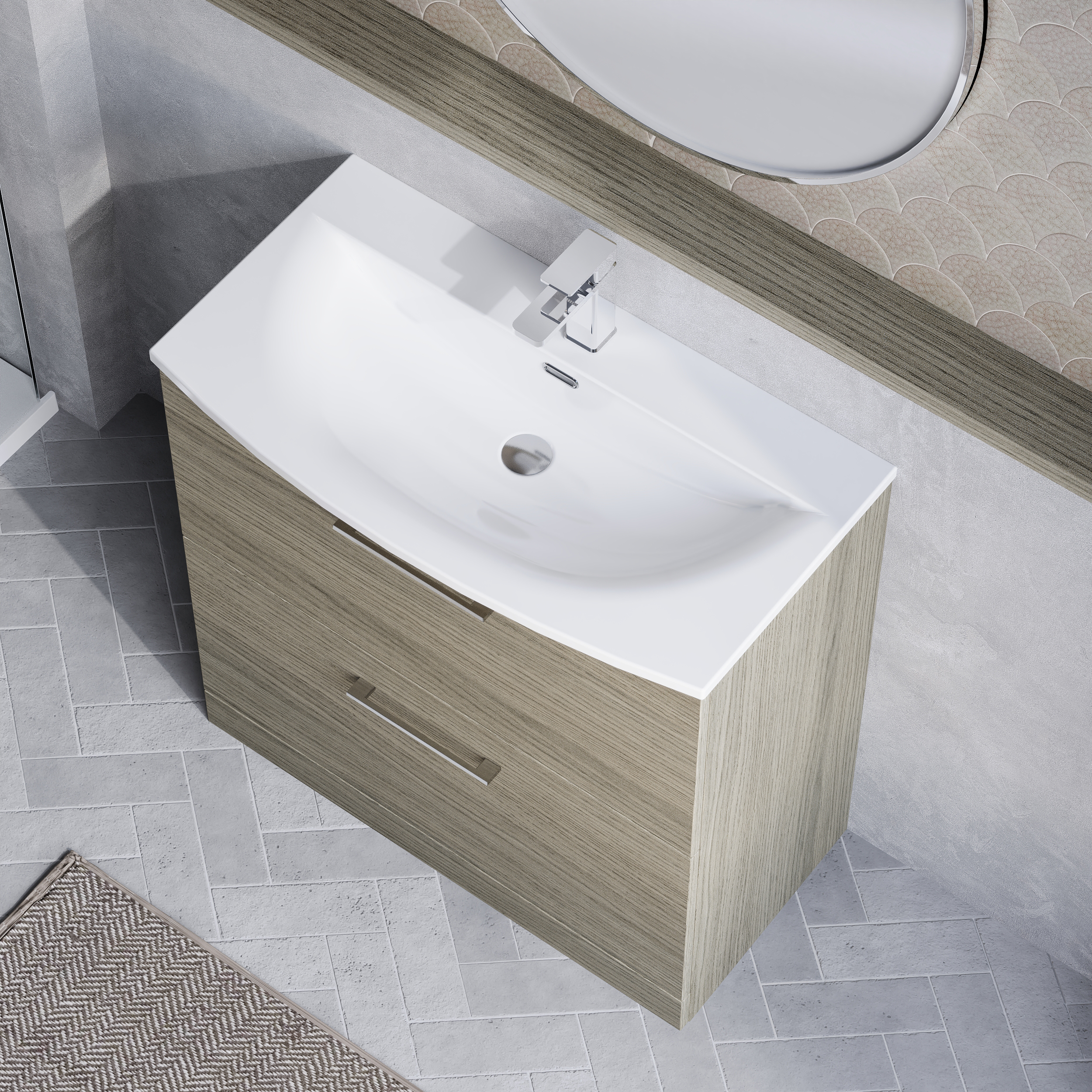 nuie Arno 800mm Floor Standing 2-Drawer Vanity & Curved Basin - Solace Oak