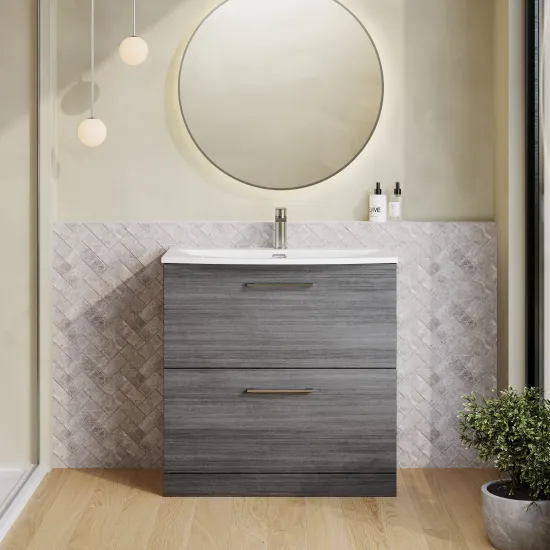 nuie Arno 800mm Floor Standing 2-Drawer Vanity & Curved Basin - Anthracite
