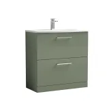 Nuie Arno 800mm Satin Green Floor Standing 2-Drawer Vanity Unit with Thin-Edge Basin