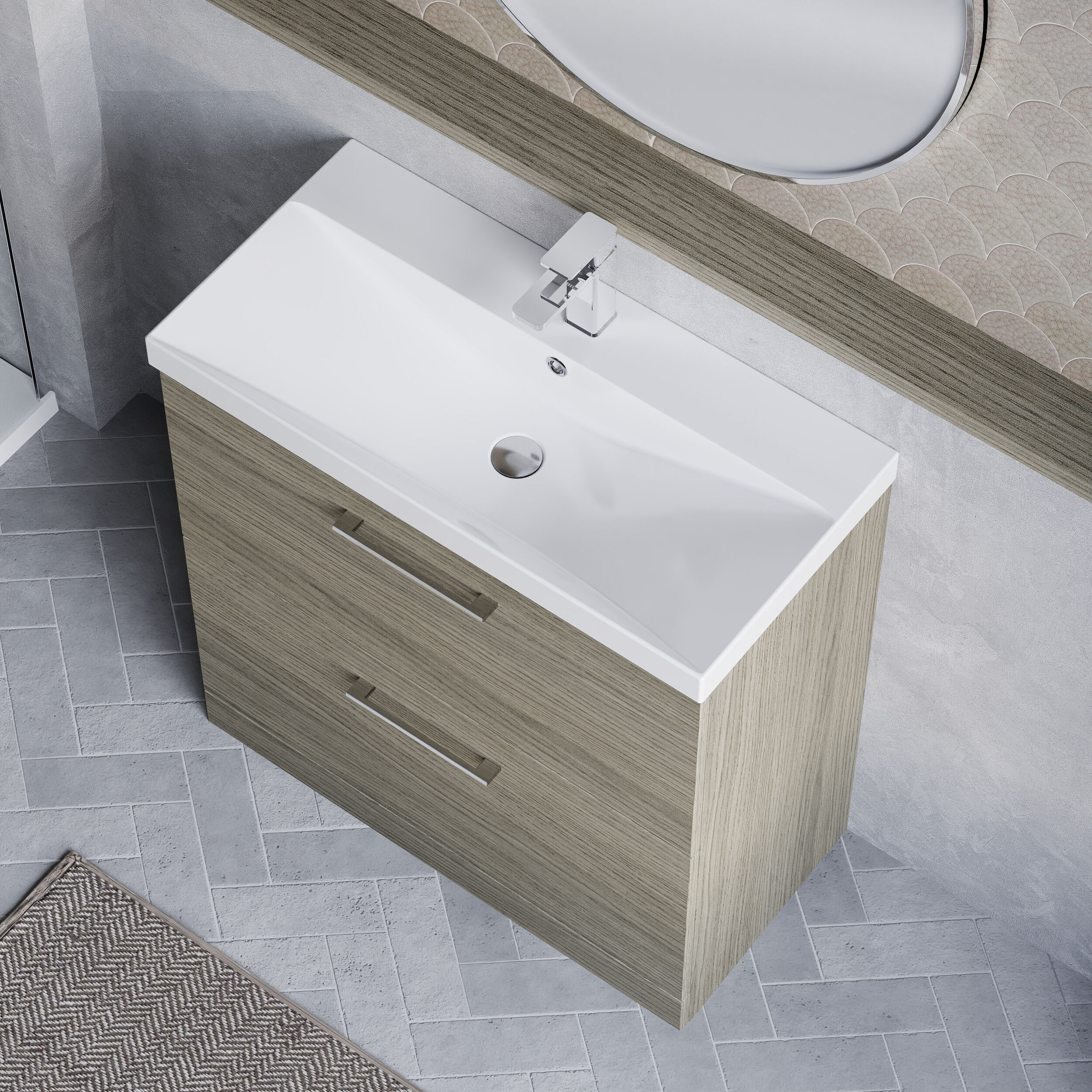 Nuie Arno 800mm Solace Oak Floor Standing 2-Drawer Vanity Unit & Basin