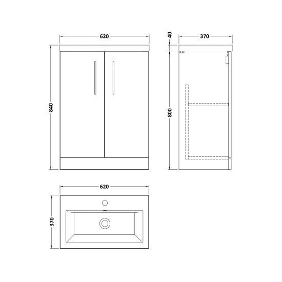 Nuie 600mm Anthracite Woodgrain Floor Standing 2-Door Vanity Unit With 1 Tap Hole Basin