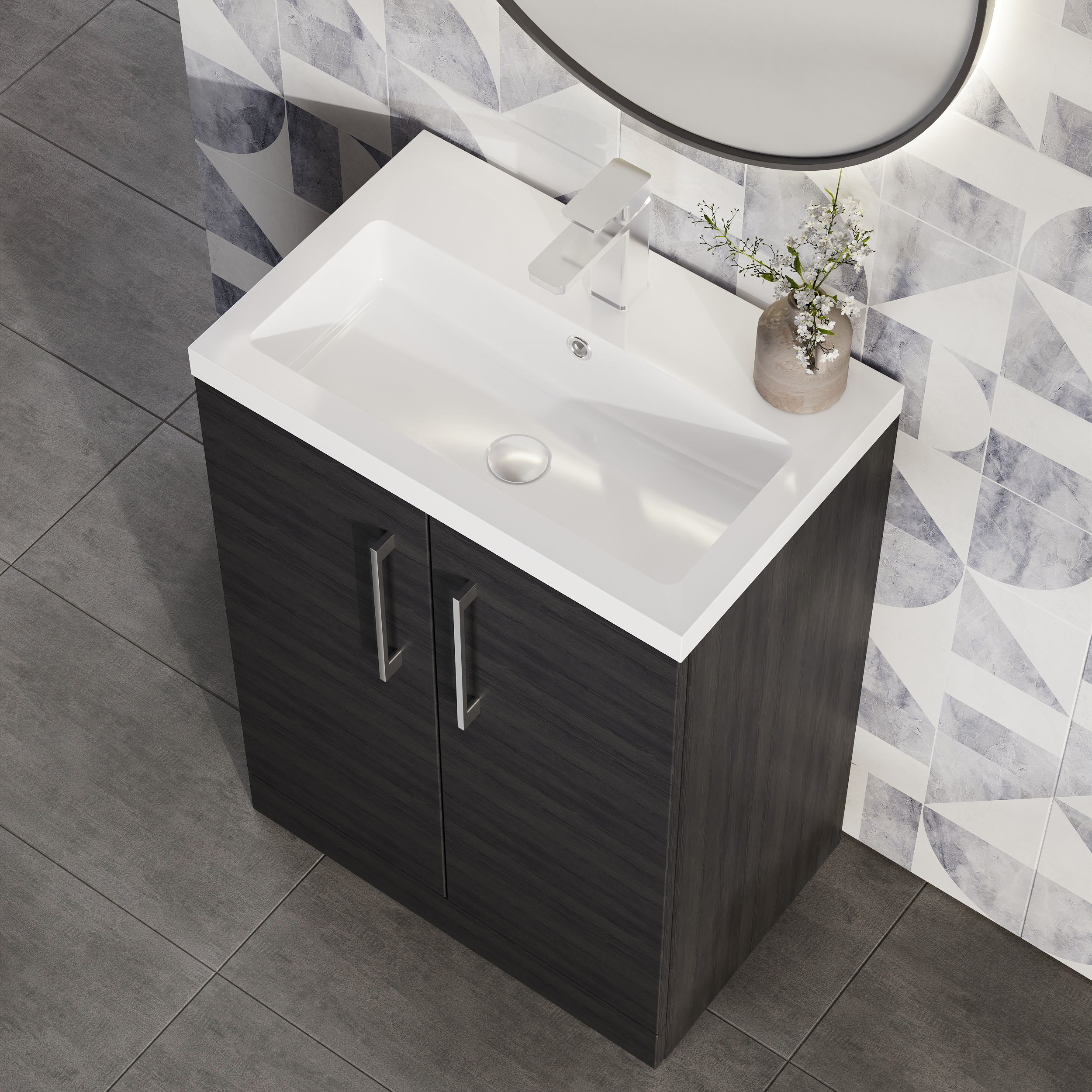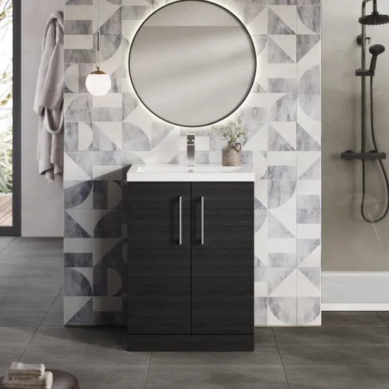 nuie Arno Compact 600mm Floor Standing 2-Door Vanity & Polymarble Basin - Charcoal Black
