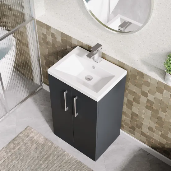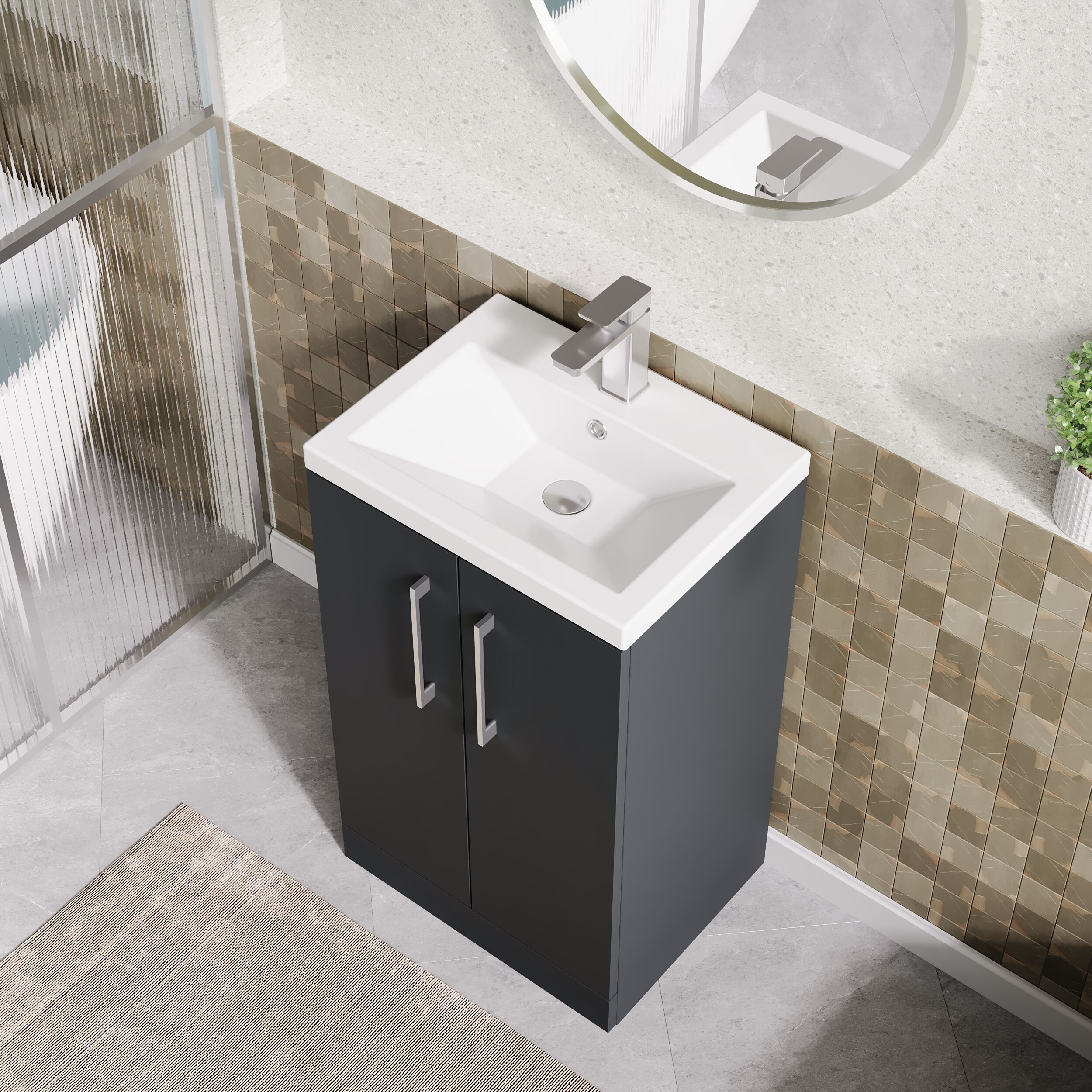 nuie Arno Compact Floor Standing 2 Door Vanity & Ceramic Basin, 500mm - Soft Black
