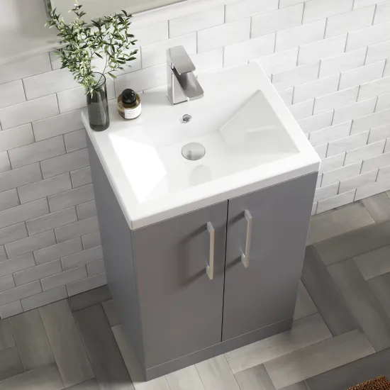 Nuie 500mm Satin Grey Floor Standing 2 Door Vanity Unit with 1 Tap Hole Basin