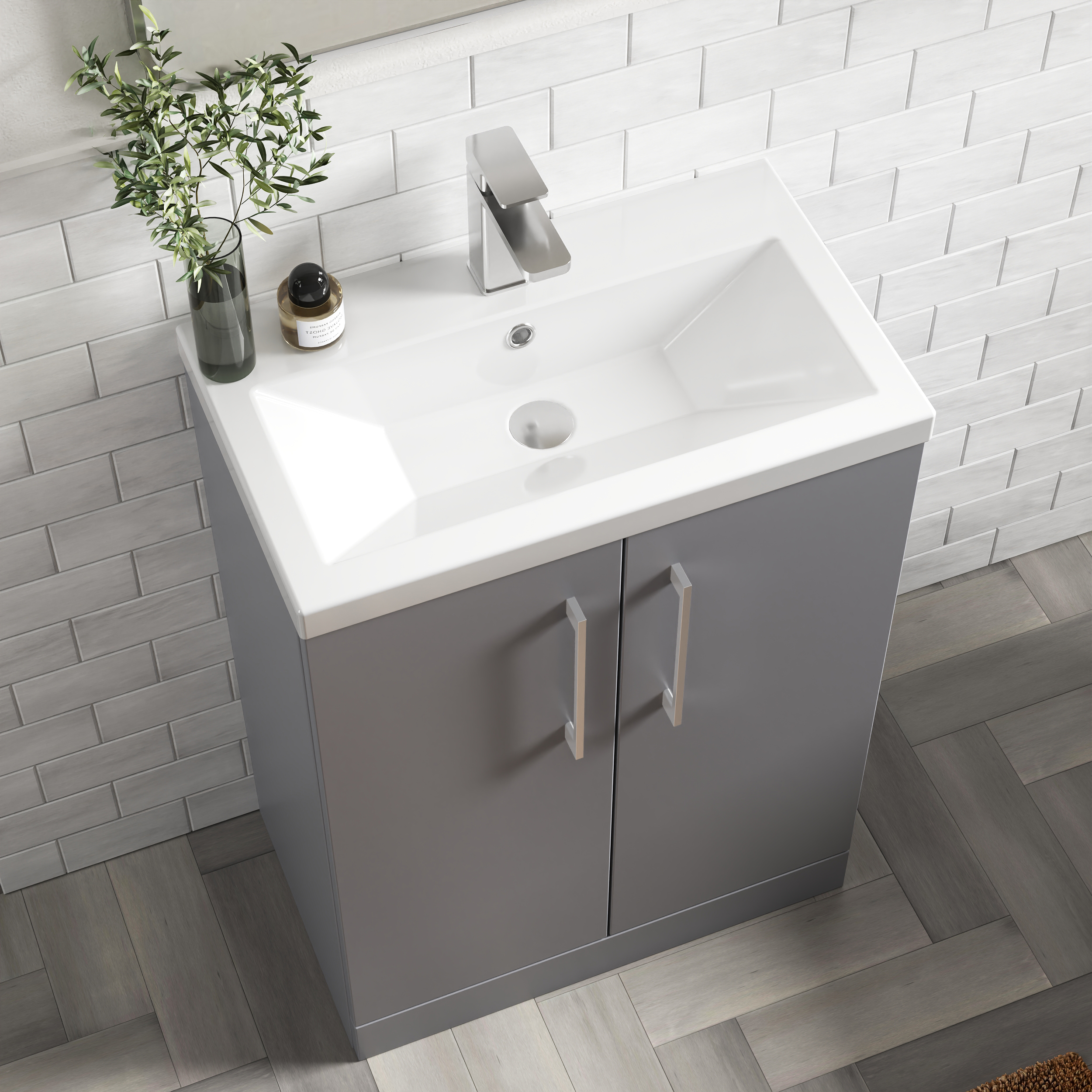 Nuie 600mm Satin Grey Floor Standing 2 Door Vanity Unit with Basin, Soft Close, Rigid