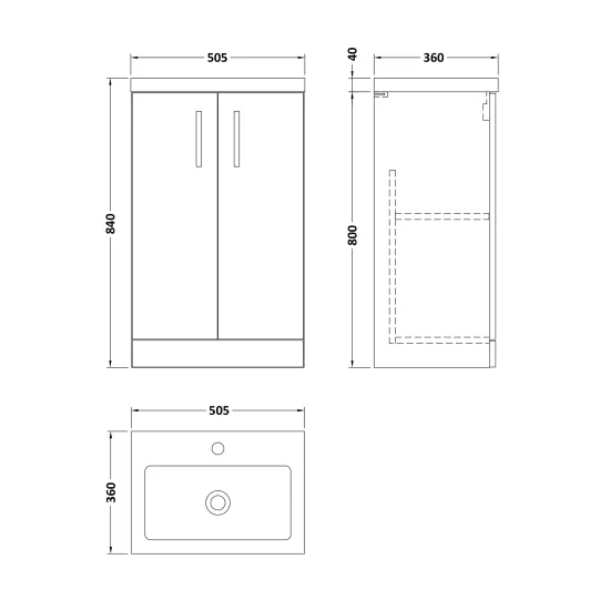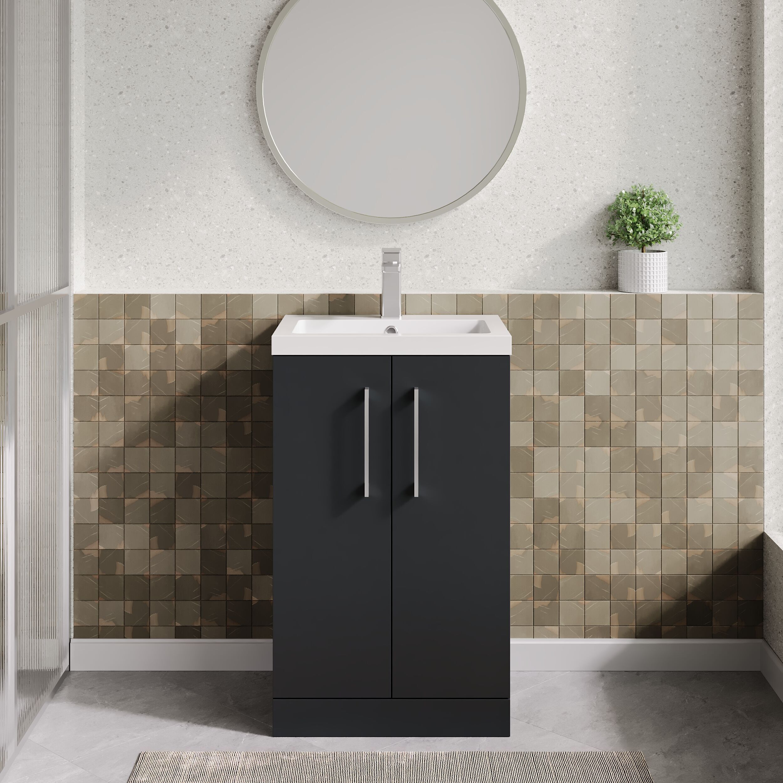 Nuie 510mm Soft Black Floor Standing 2 Door Vanity Unit With Basin