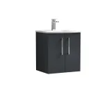 Nuie 500mm Soft Black Wall Hung 2 Door Vanity Unit With Basin
