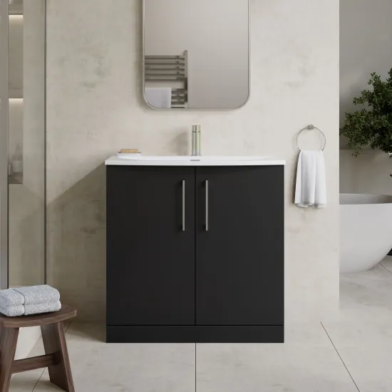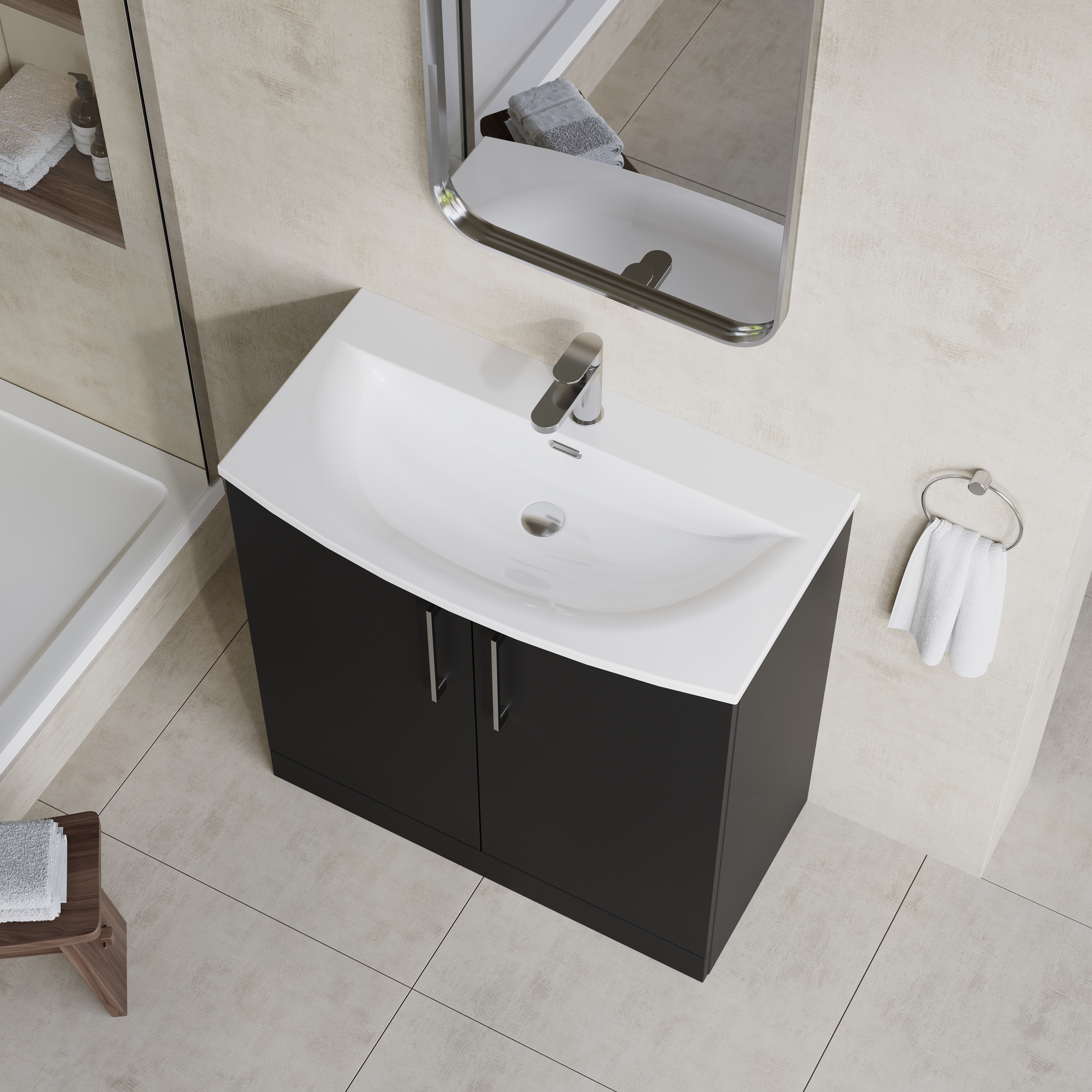 Nuie Arno 800mm Anthracite Woodgrain Rigid Floor Standing 2-Door Vanity Unit With Curved Basin
