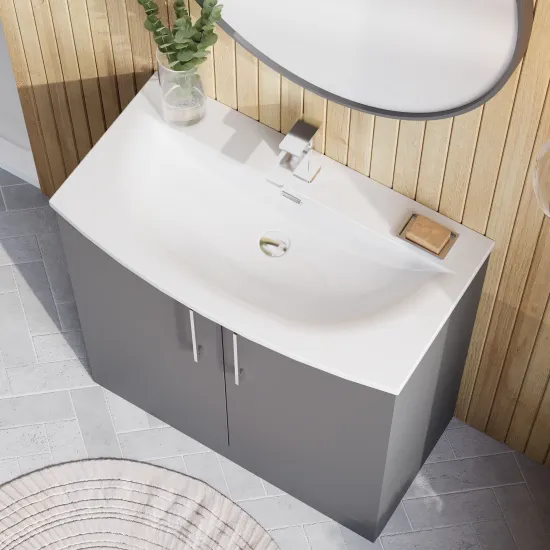 Nuie Arno 800mm Satin Grey 1 Drawer Wall Hung Vanity Unit With Curved Basin
