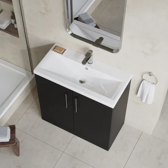 Nuie Arno 800mm Anthracite Woodgrain Floor Standing 2-Door Vanity Unit with Basin