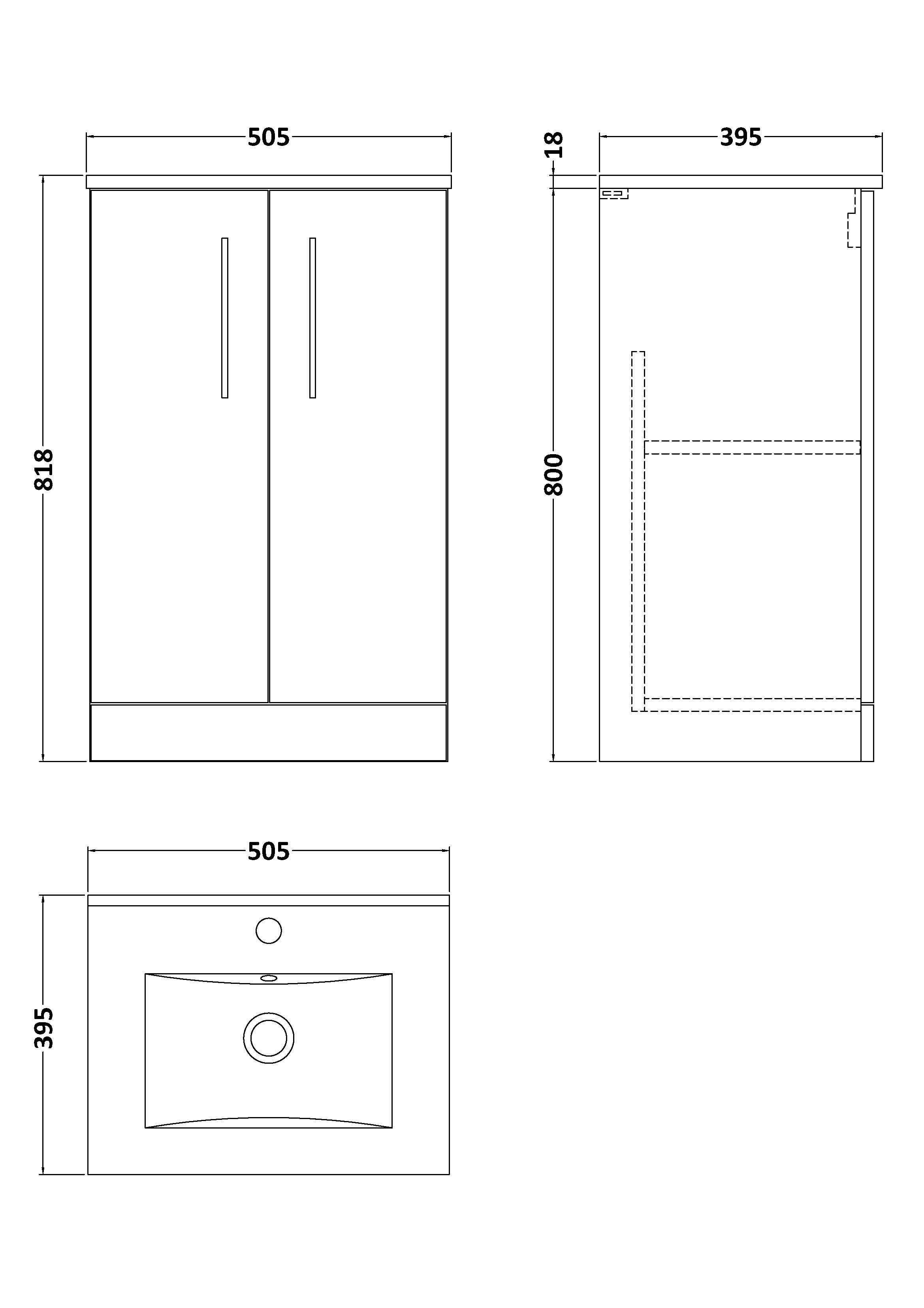 Nuie Arno 500mm 2-Door Floor Standing Vanity Unit with Basin