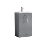 Nuie Arno 500mm Satin Grey Floor Standing 2 Door Vanity Unit with Basin With Handles